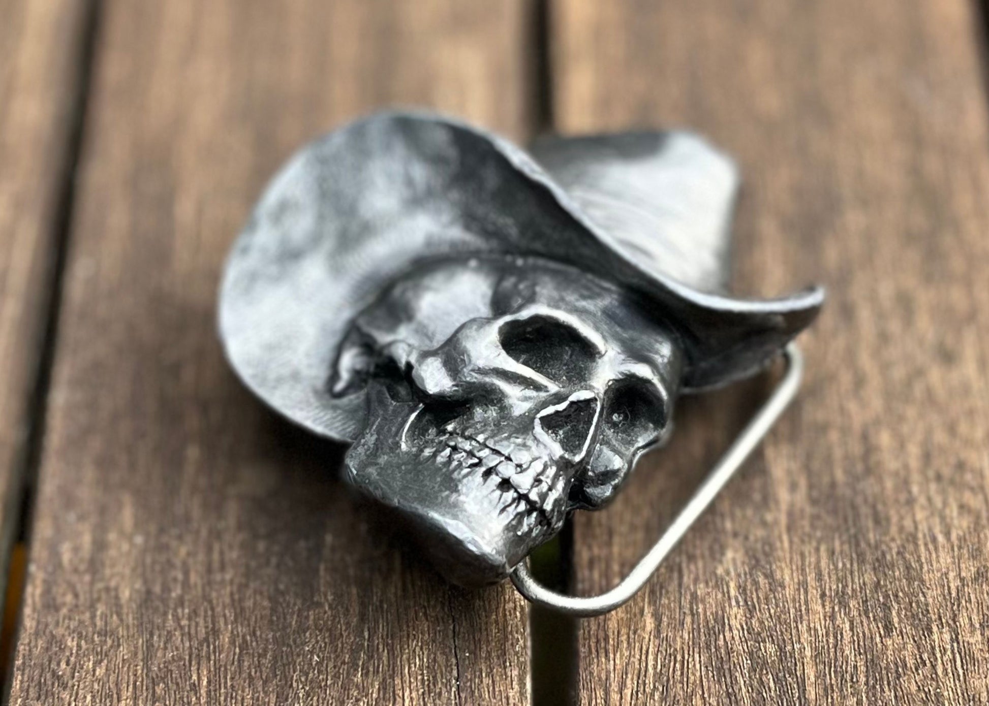 'El Pistolero Muerto' Skull Cowboy Belt Buckle by Bergamot Buckles USA - W-30